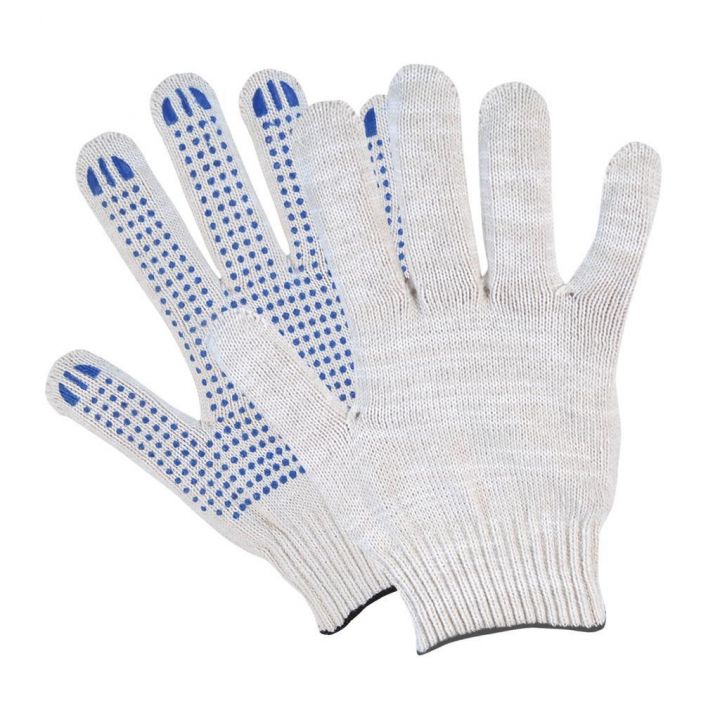 10 класс вязки, 4 нити. ПВХ покрытие ладони в виде точек. Перчатки предназначены для выполнения работ со средними значениями механических нагрузок.